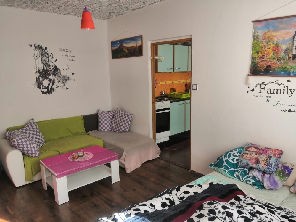 Dispozice: Kuchyně s kuchyňskou linkou a s obývacím pokojem, ložnice,