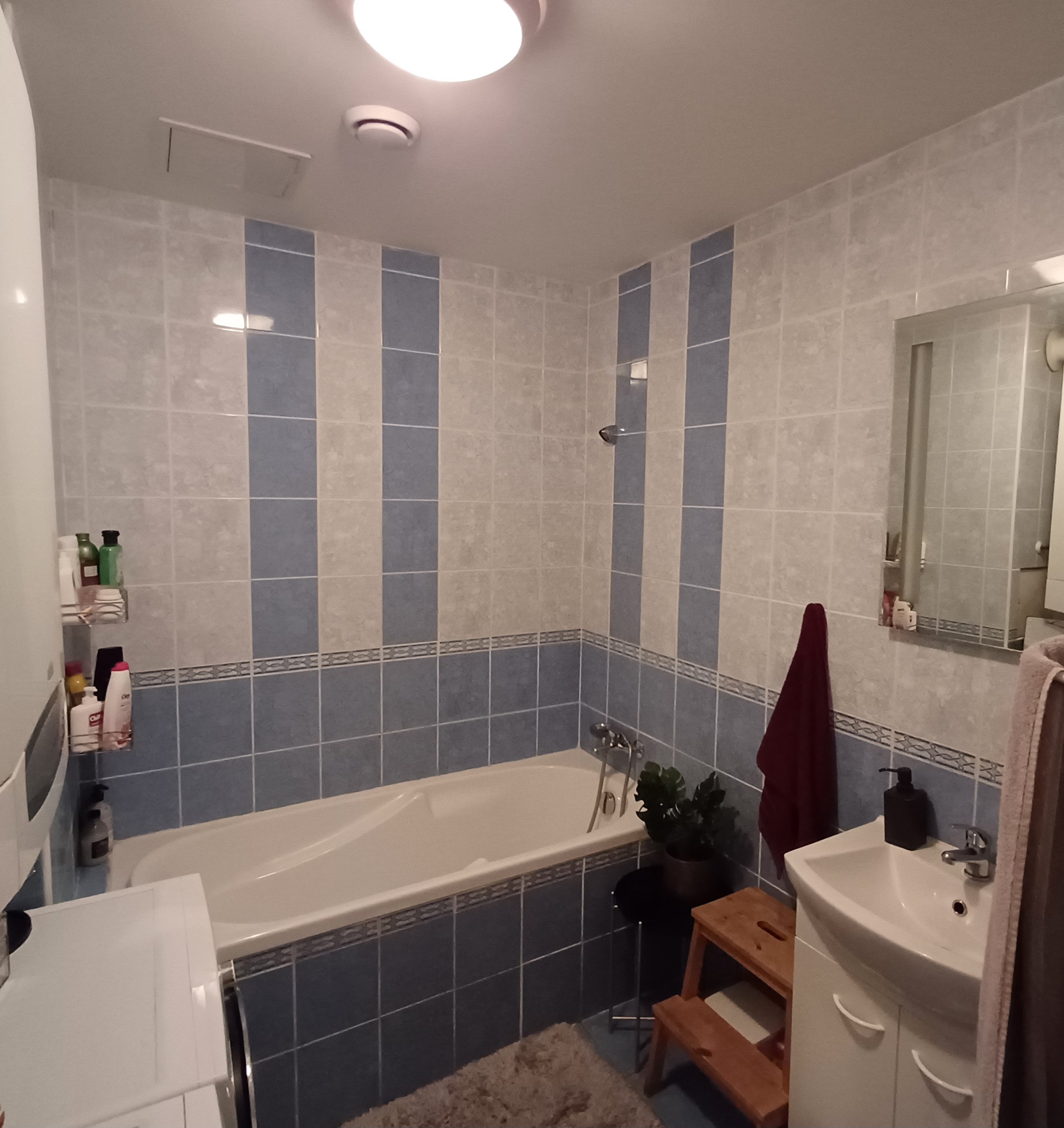 spotřebiči. Prostorná koupelna s vanou a kondenzačním plynovým kotlem, který slouží k