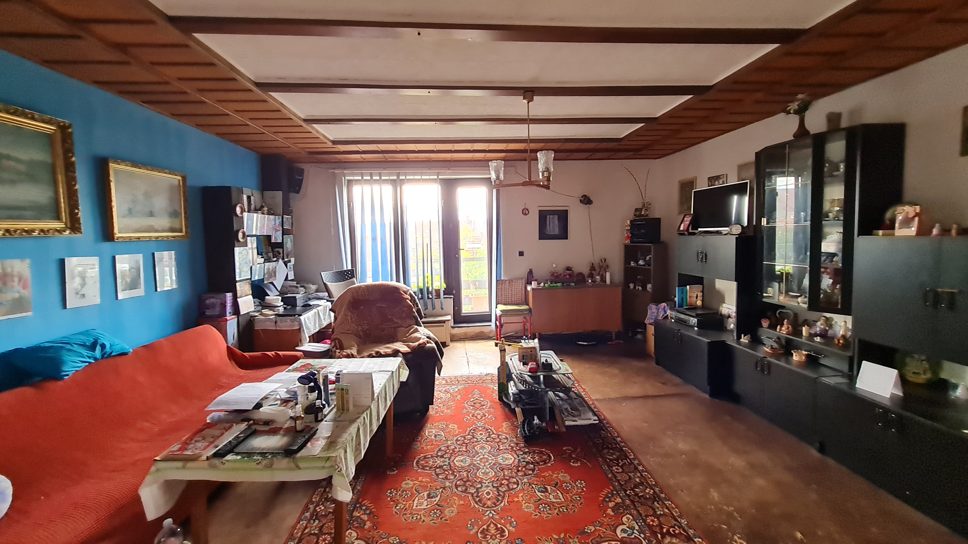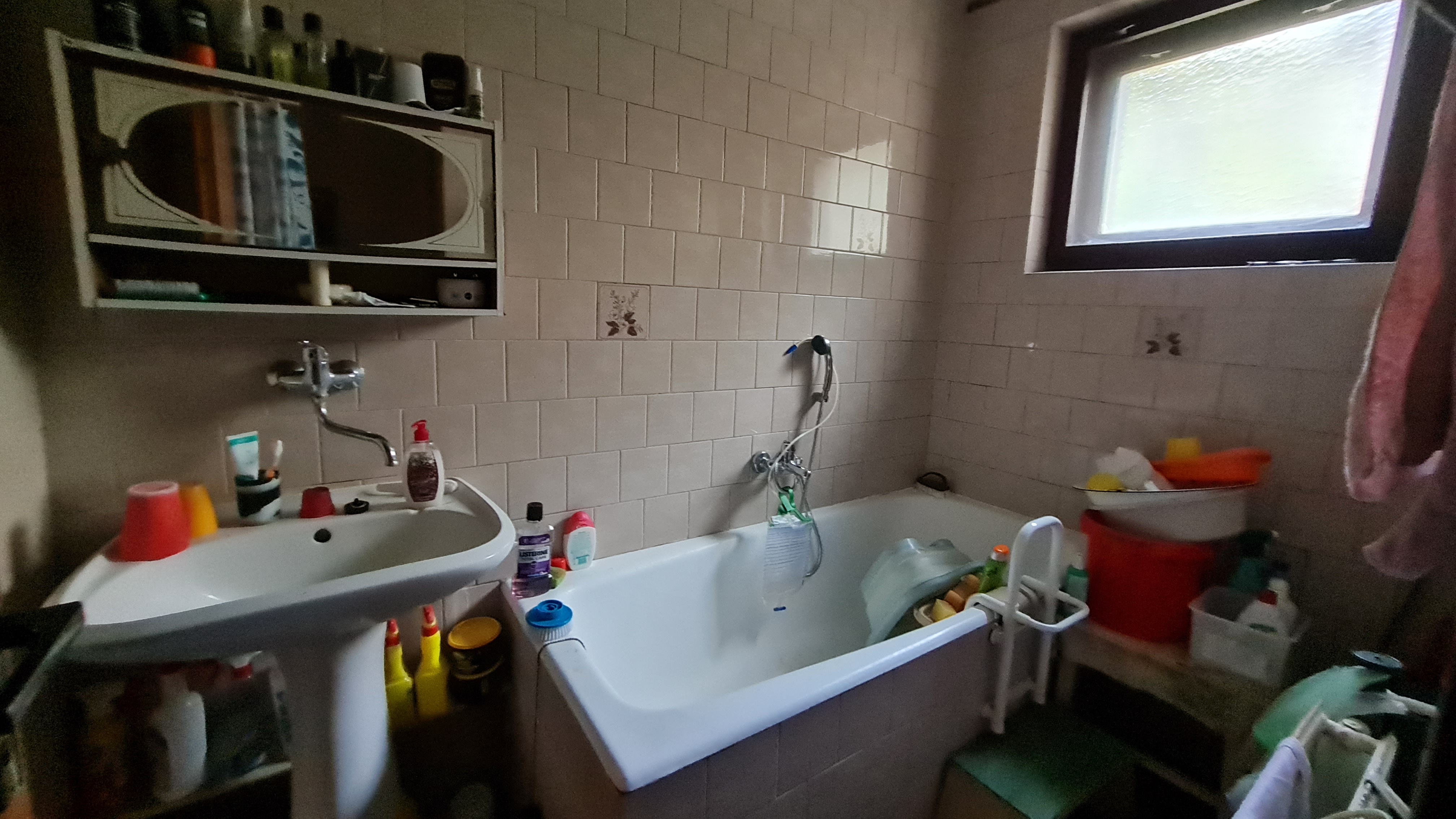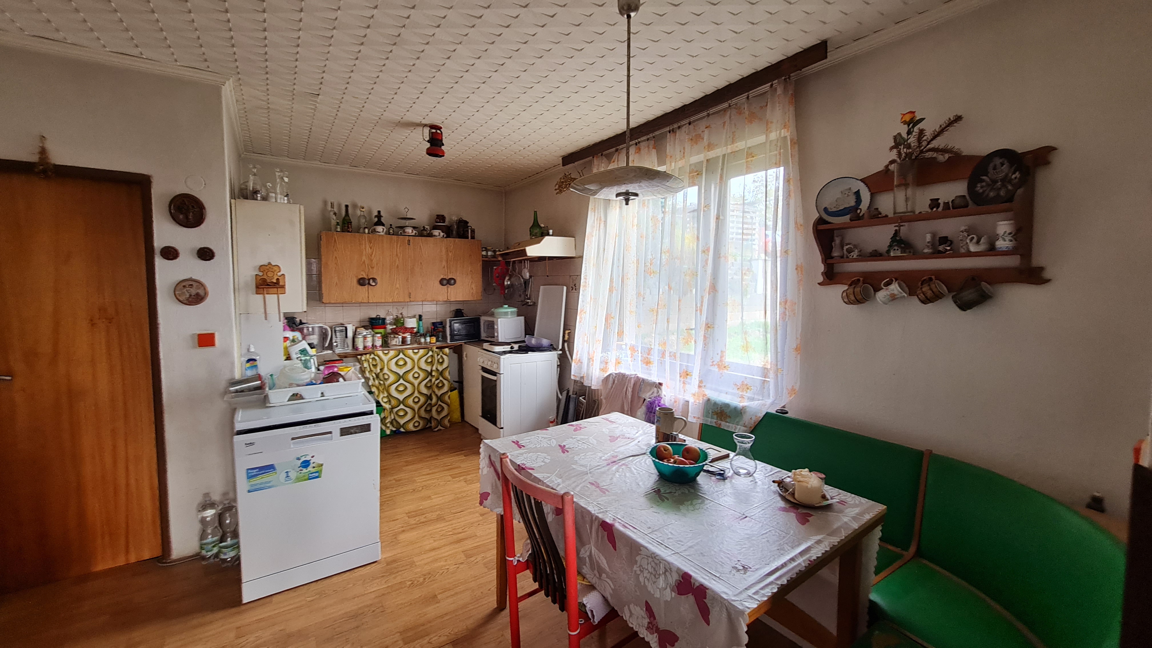 kotlem, ohřev vody – bojler, Střecha je sedlová - betonové tašky.