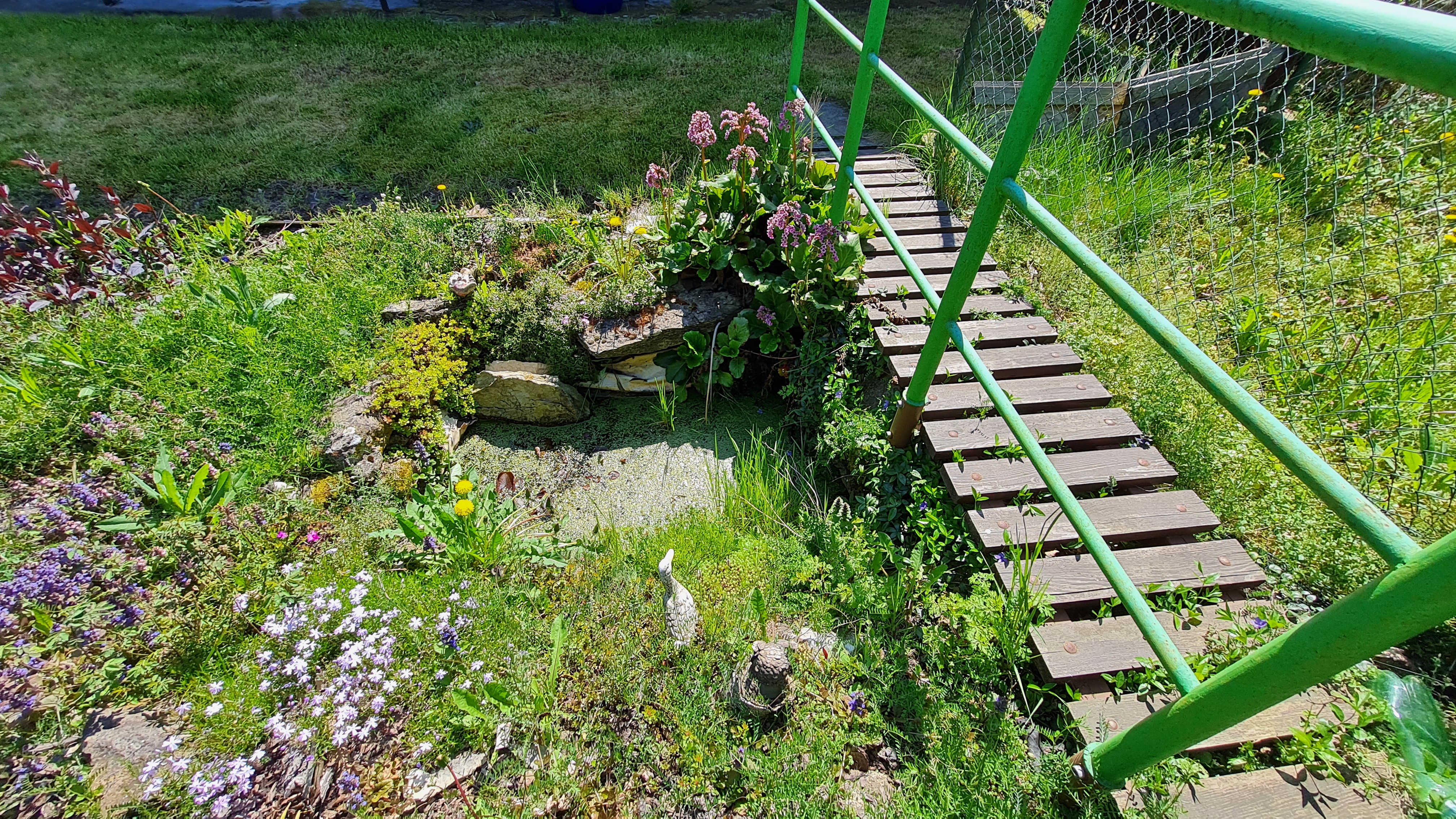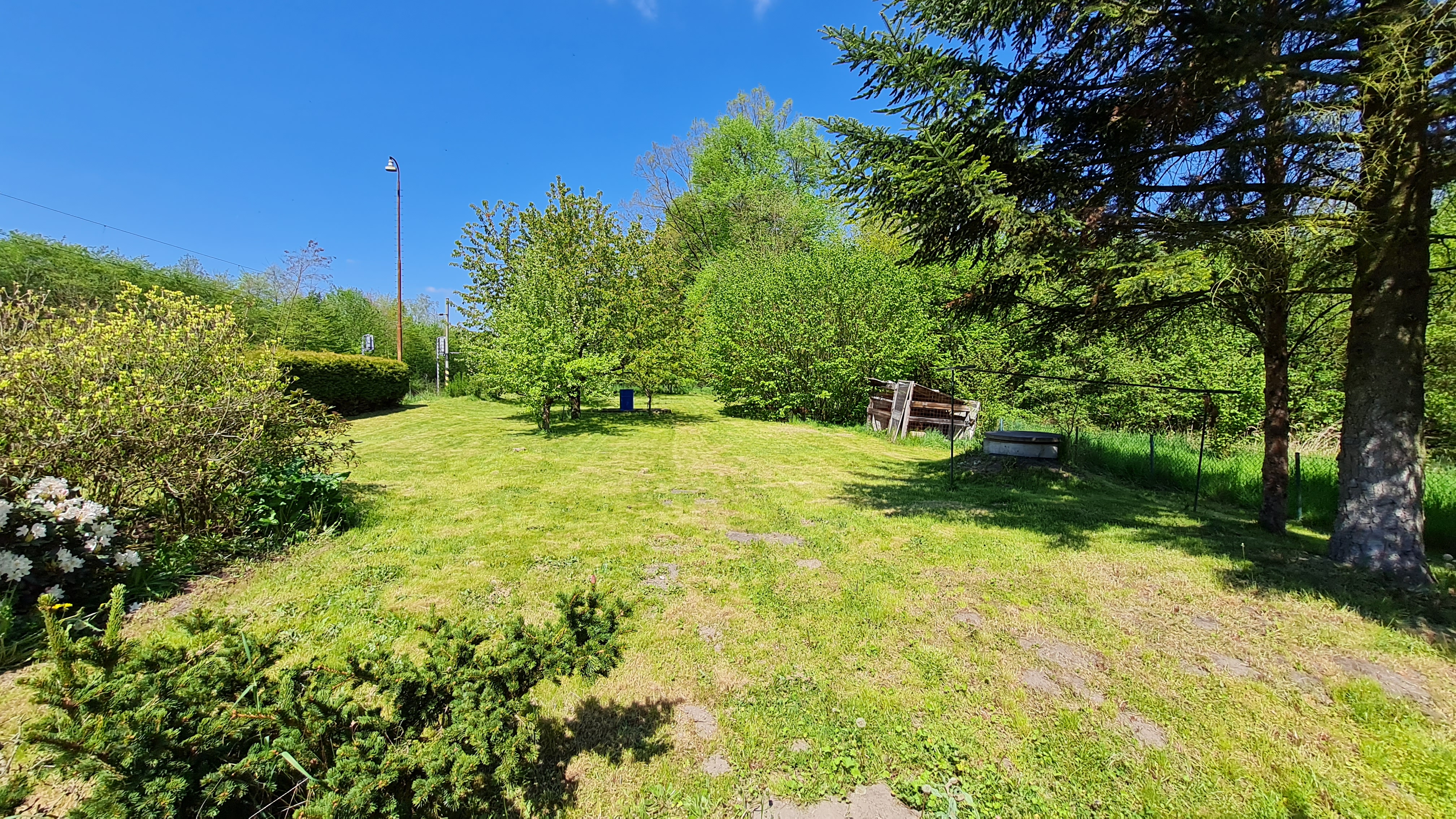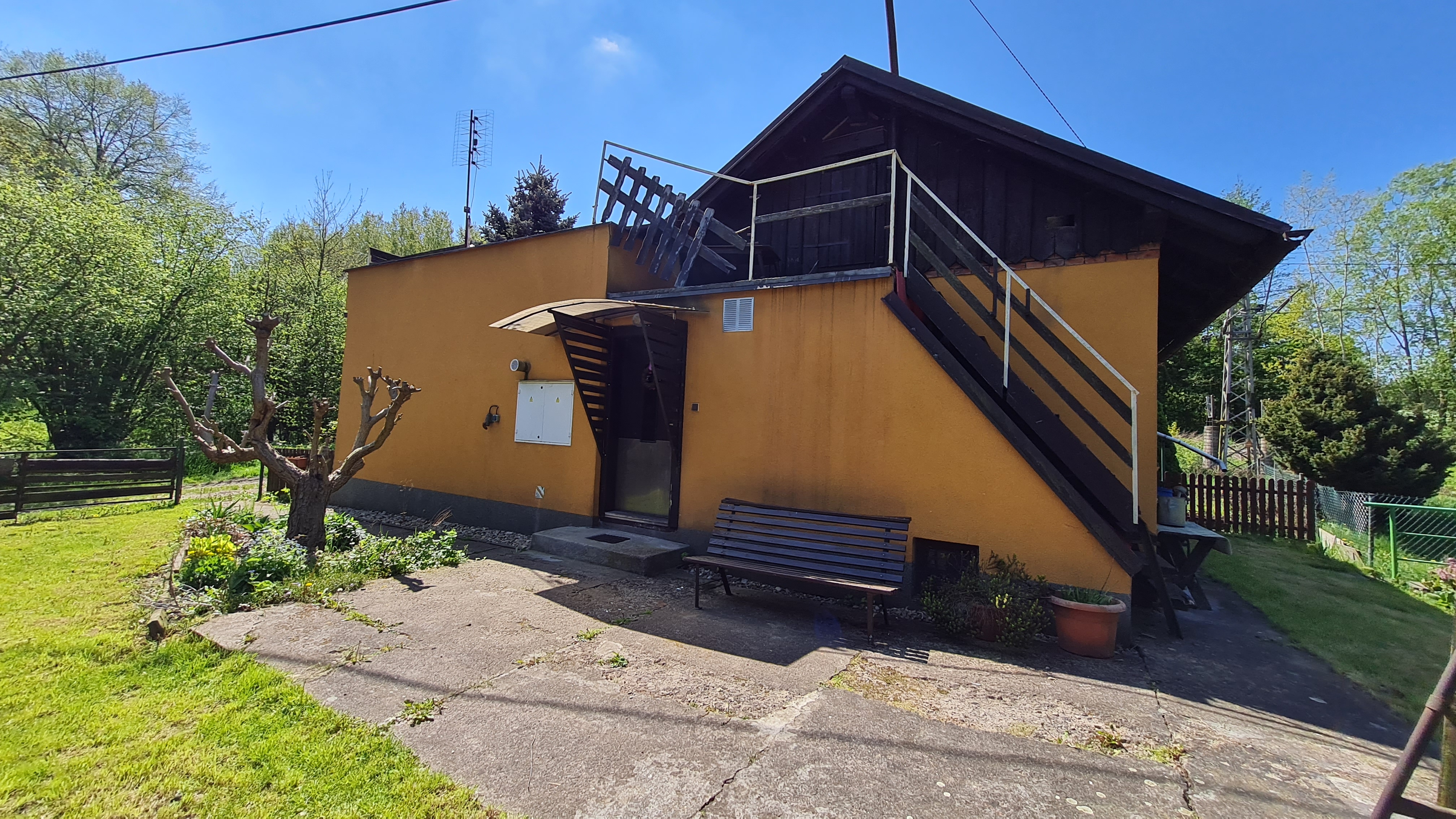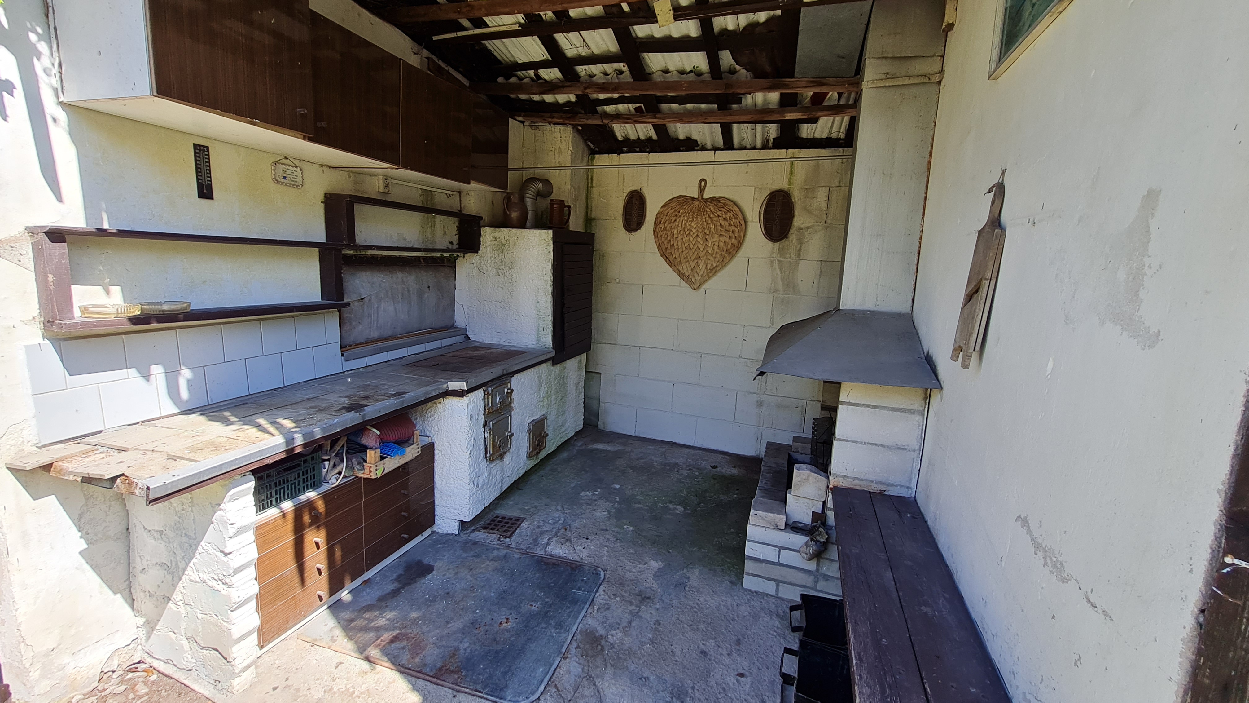K domu patří velká zahrada, dřevníky, venkovní kuchyňka s krbem.