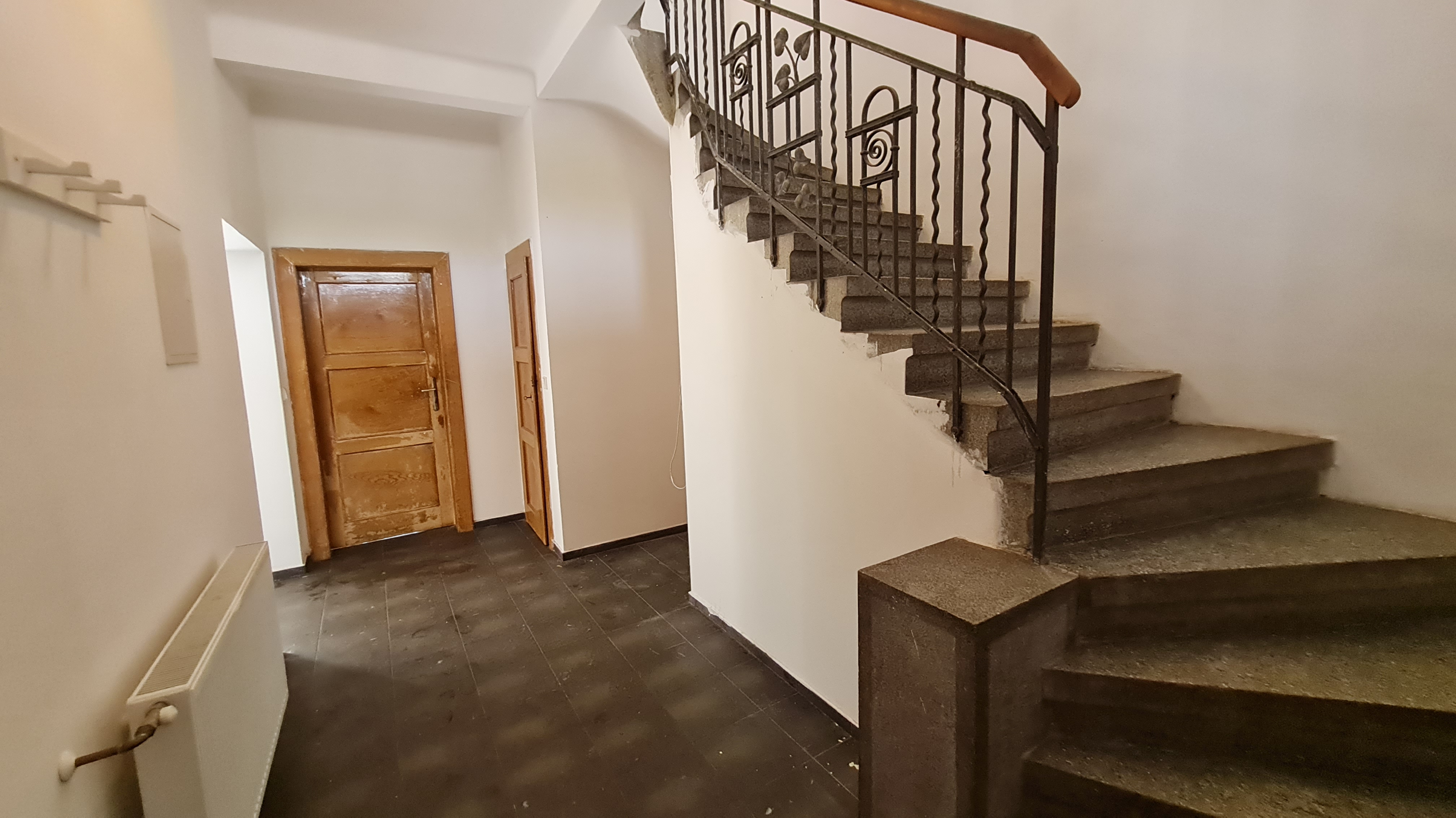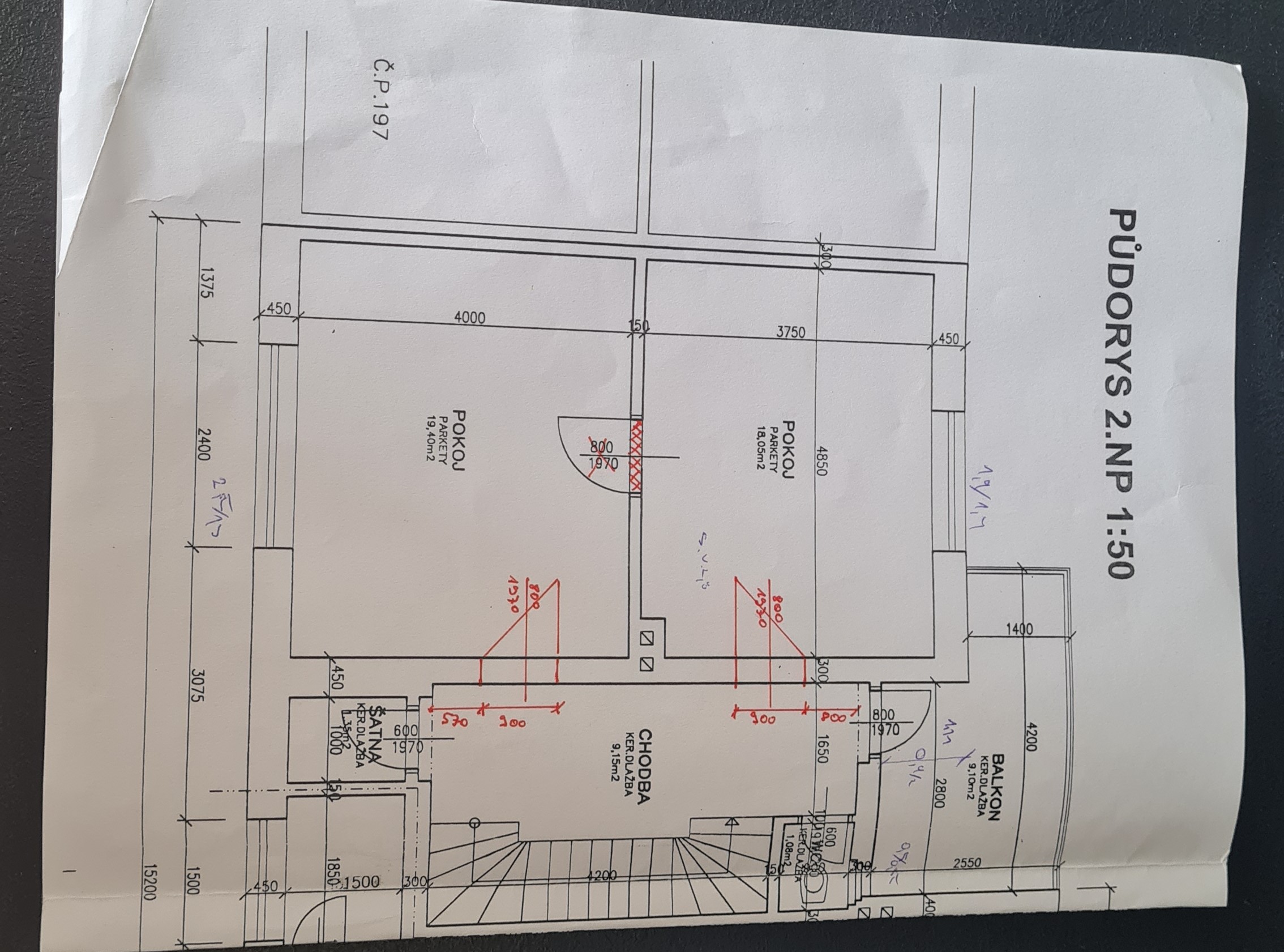 pokoje, šatna, toaleta, balkon a vstup po schodišti na půdu, kde je