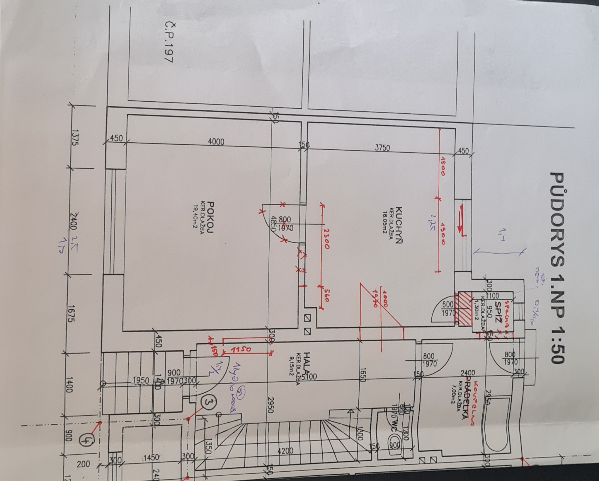 dveře, podlahové topení v přízemí domu, v roce 2018 nová kuchyňská