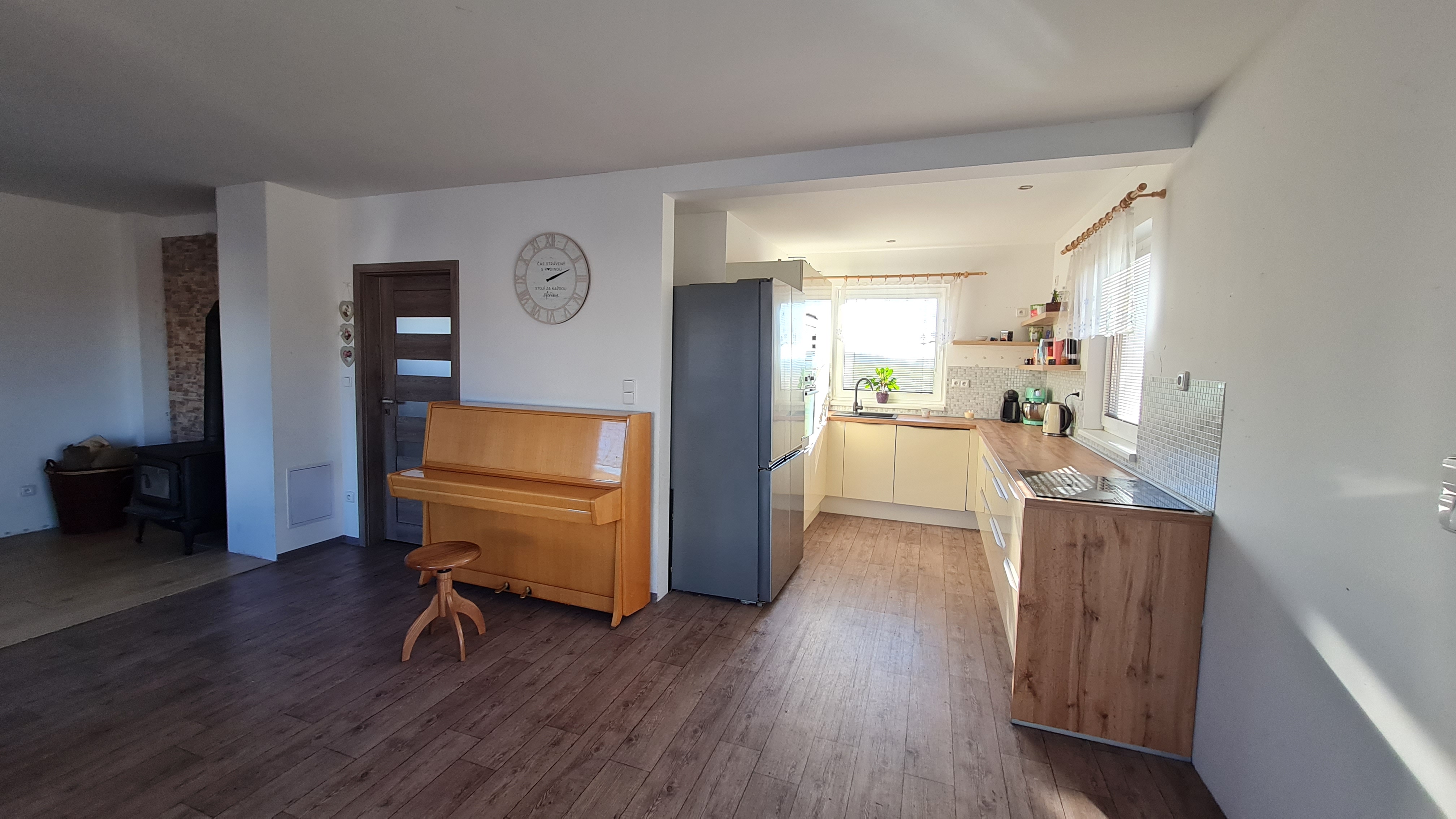 Dále je v přízemí domu prostorná místnost, která je rozdělena na část