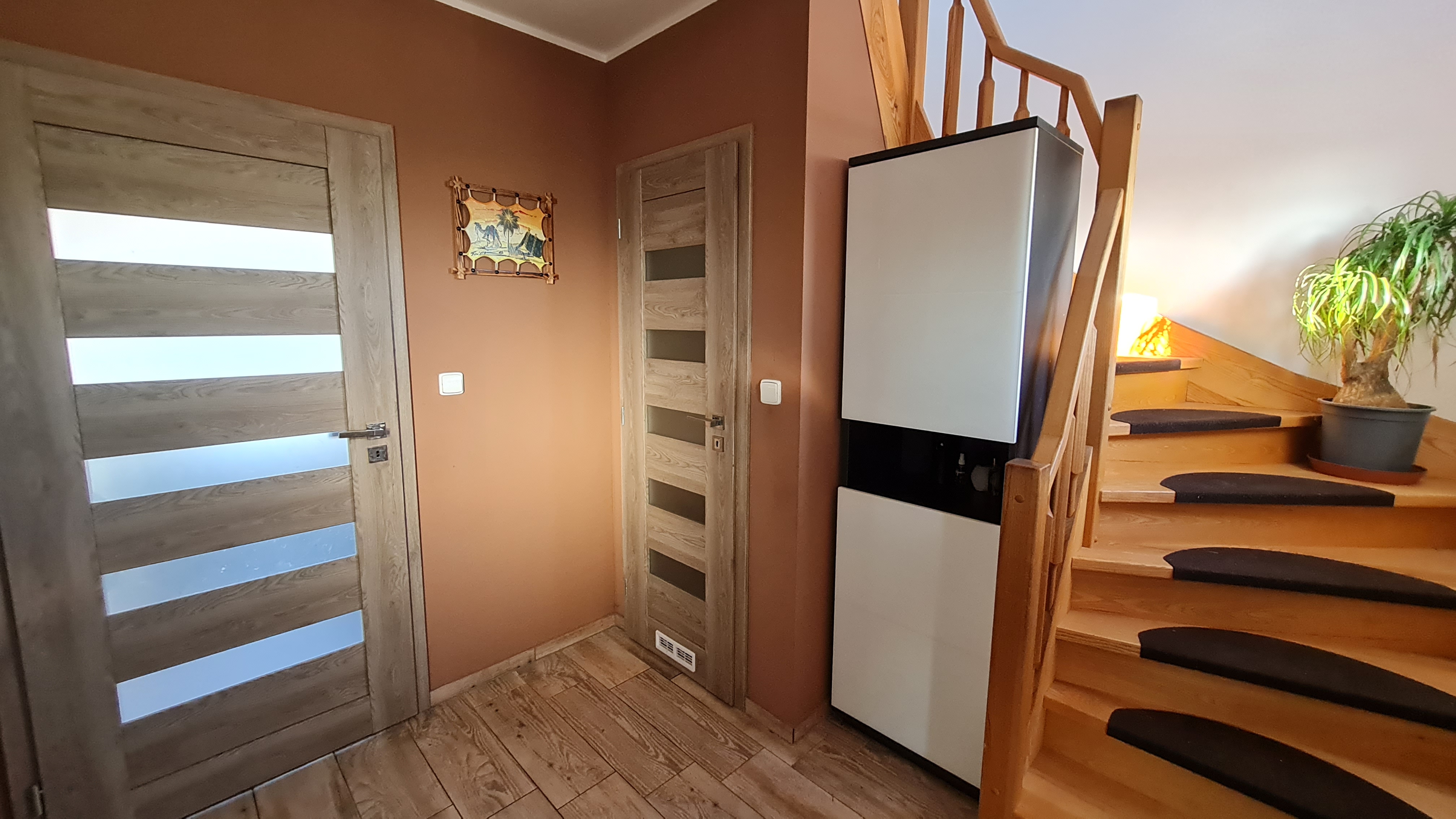 Přízemí domu a 1. patro spojuje dřevěné schodiště. V této části domu