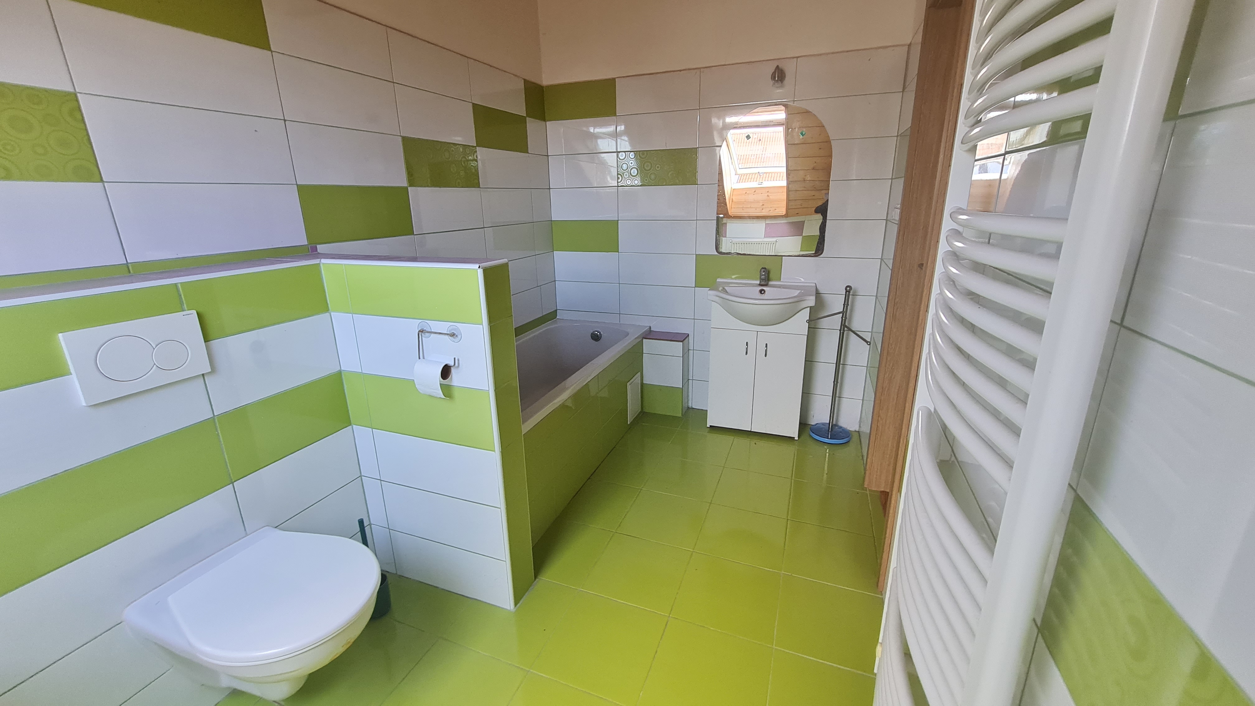 sprchovým koutem, spíže a samostatnou toaletou. V podkroví jsou dva