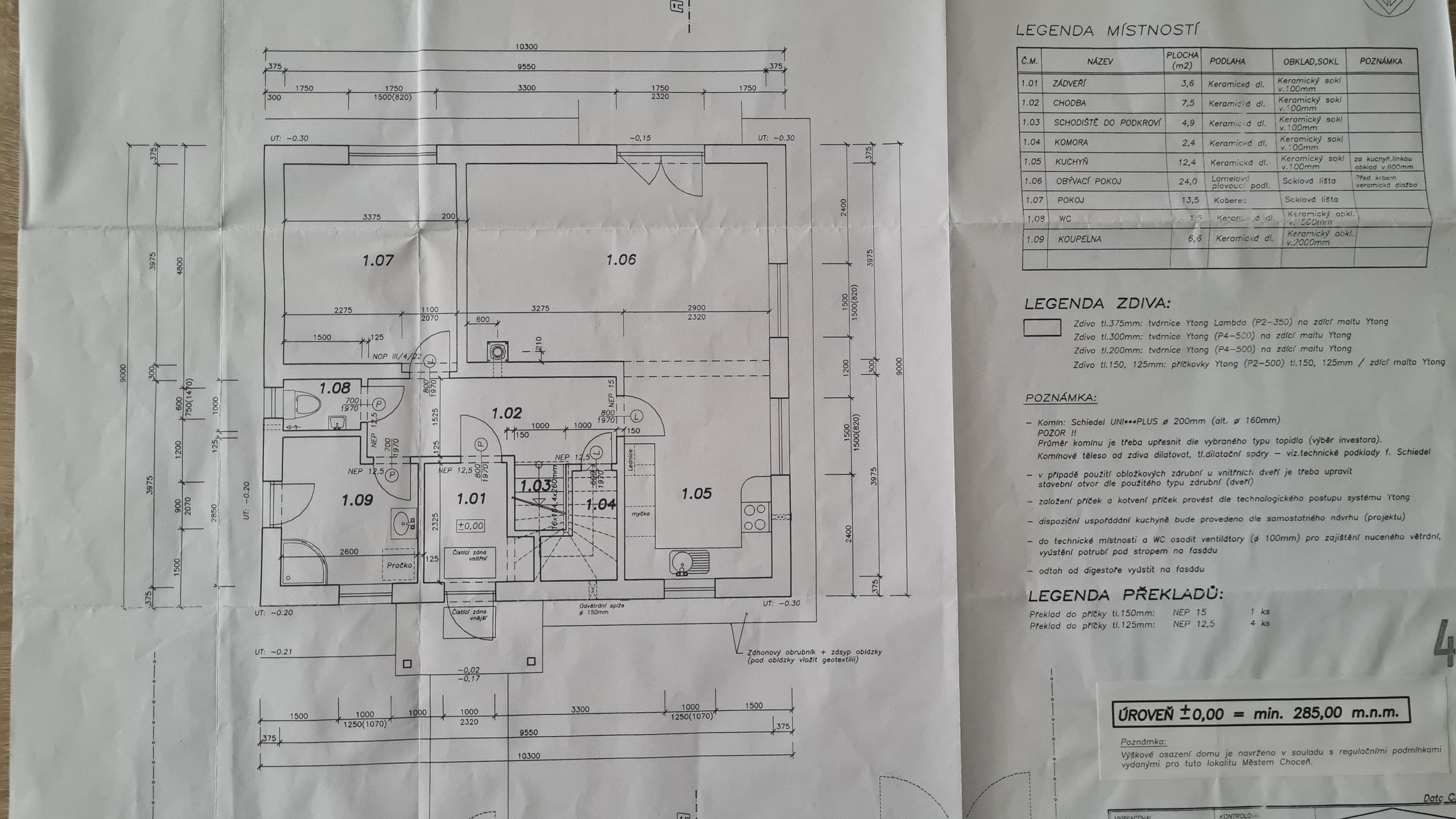 paliva, či krbová kamna s výměníkem. Podlahy jsou plovoucí a dlažba.