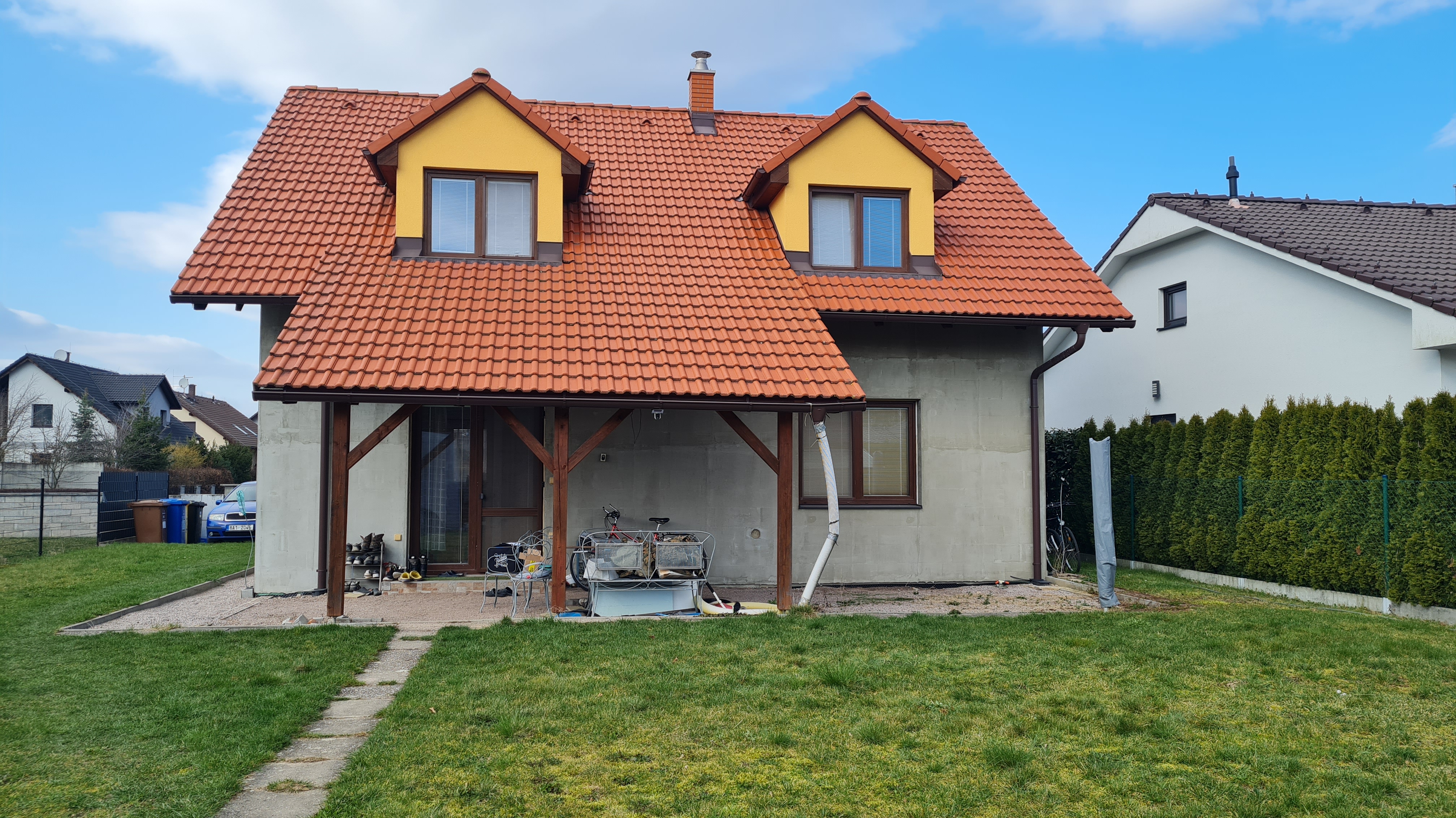 Jedná se o samostatně stojící dům se zahradou, zastřešenou pergolou,