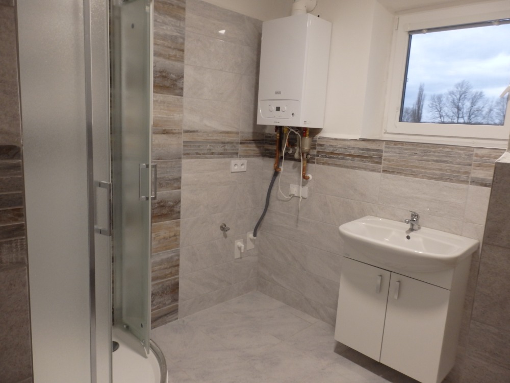 plynový kotel. Topení je zde ústřední plynové na vlastní plynový kotel, voda -