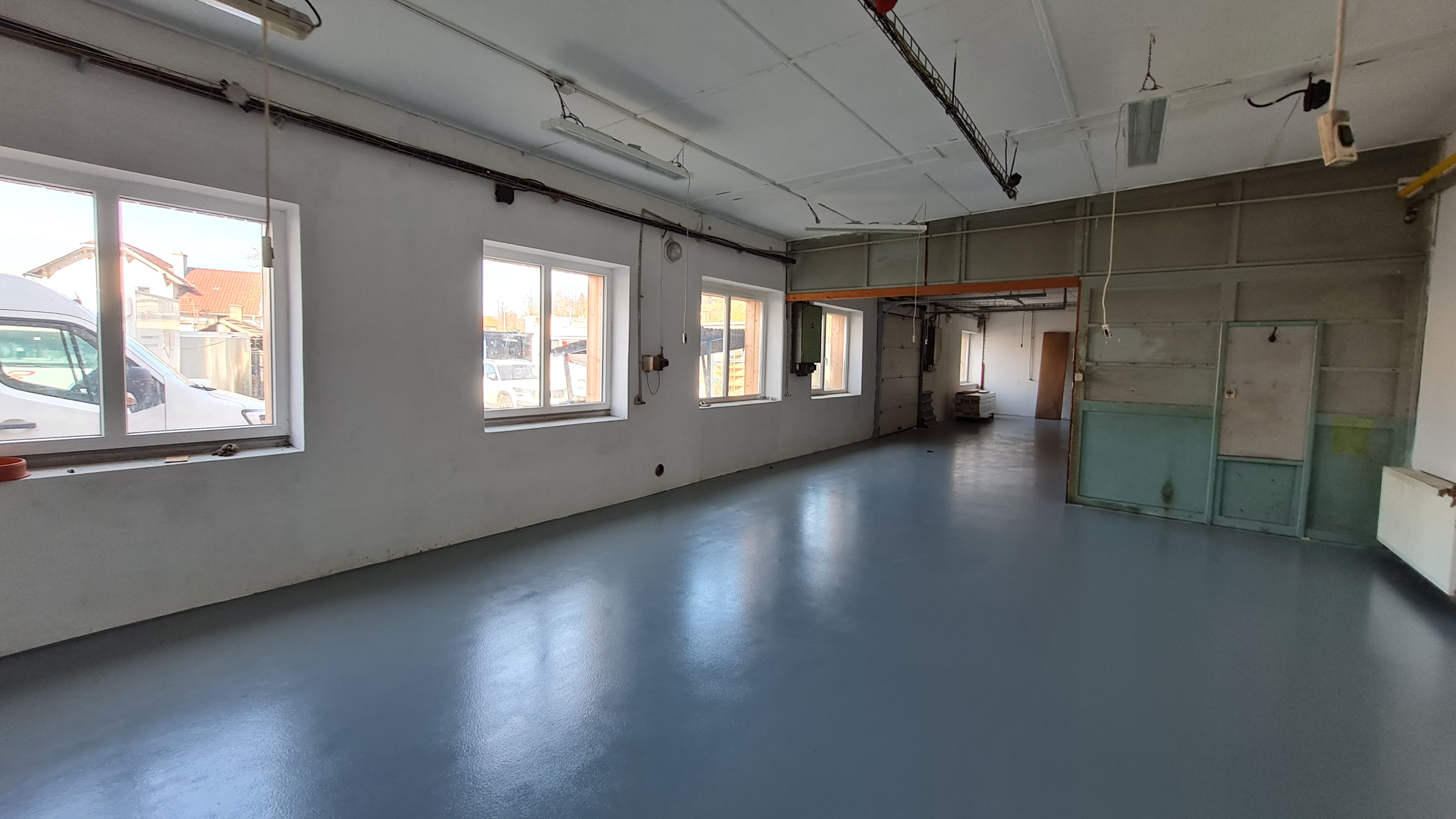vytápěná hala o výměře 149 m2, společné sociální zařízení (dvě WC, dvě